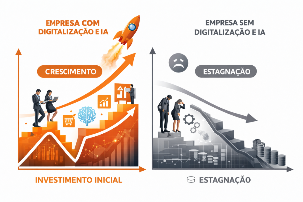 O investimento em digitalização e Inteligência Artificial não é um custo. É uma semente. Uma semente que gera eficiência, clareza e competitividade. O que hoje parece um passo atrás torna-se, em pouco tempo, o impulso que leva a empresa dois passos à frente. O verdadeiro progresso nasce quando se escolhe evoluir, mesmo sem garantias, mas com propósito.